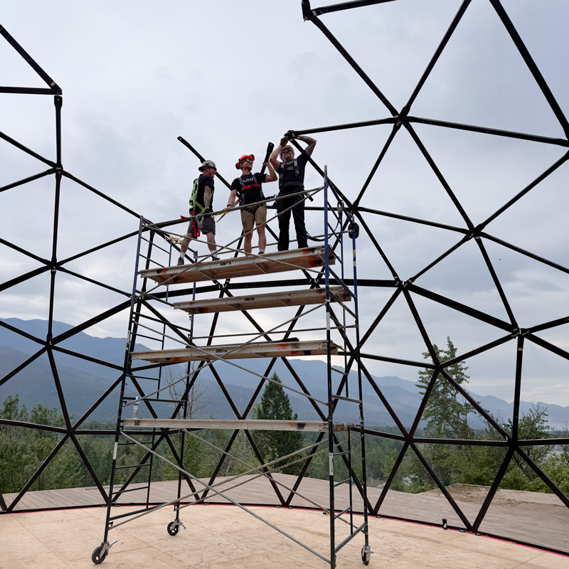From the outside, very little of the frame is exposed once the dome is complete. The primary visible area is around the panoramic window, which is also where the structure sees the most direct exposure to the elements.