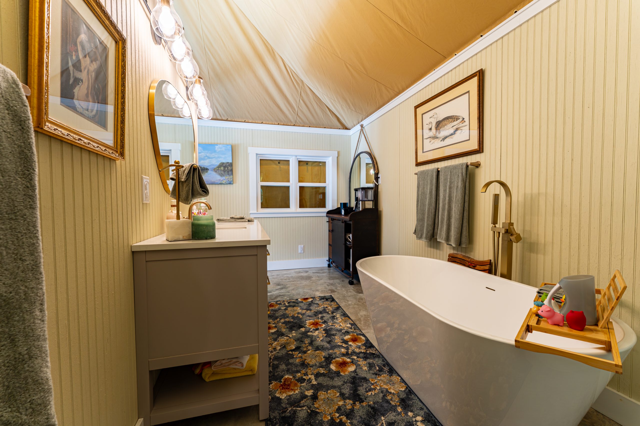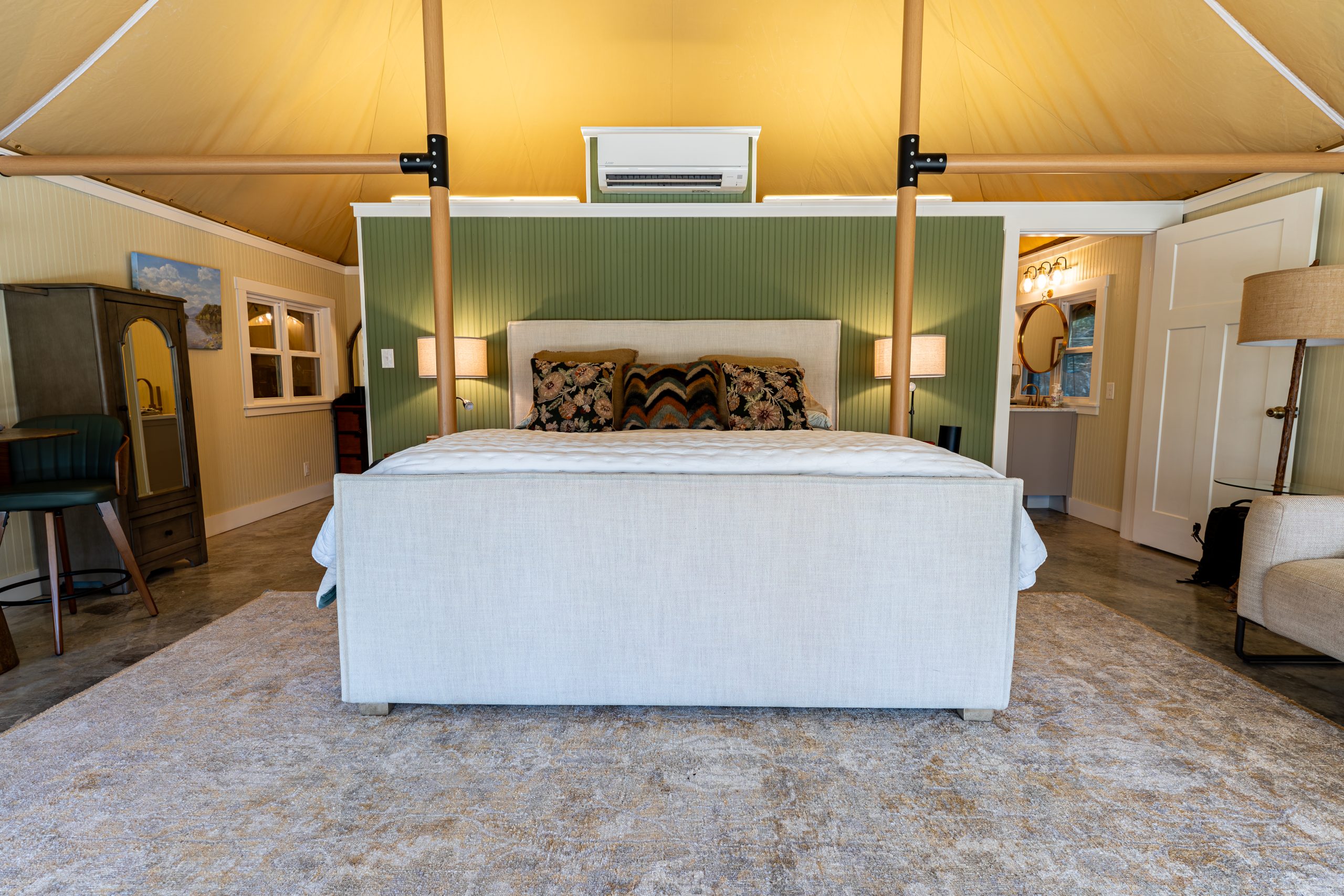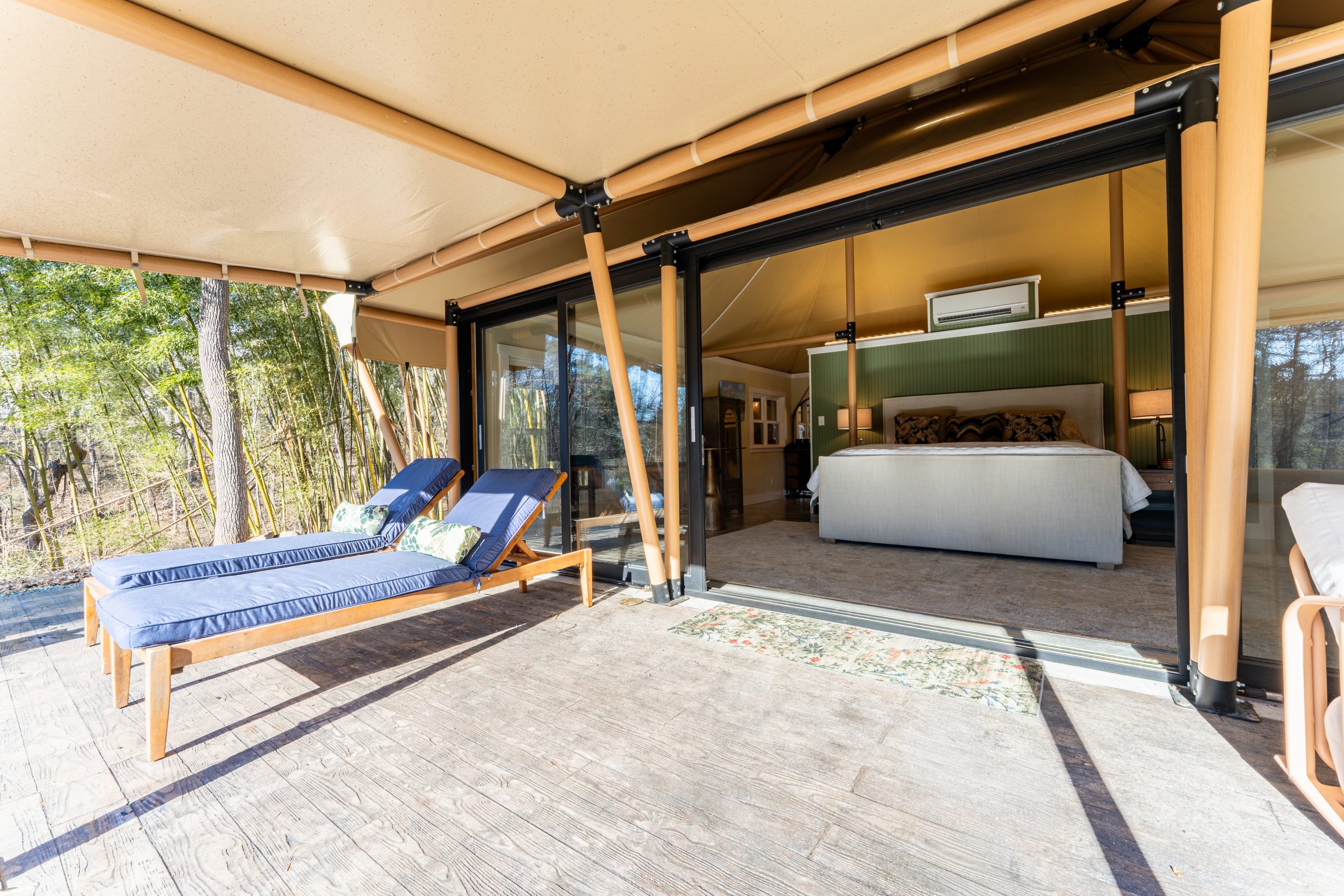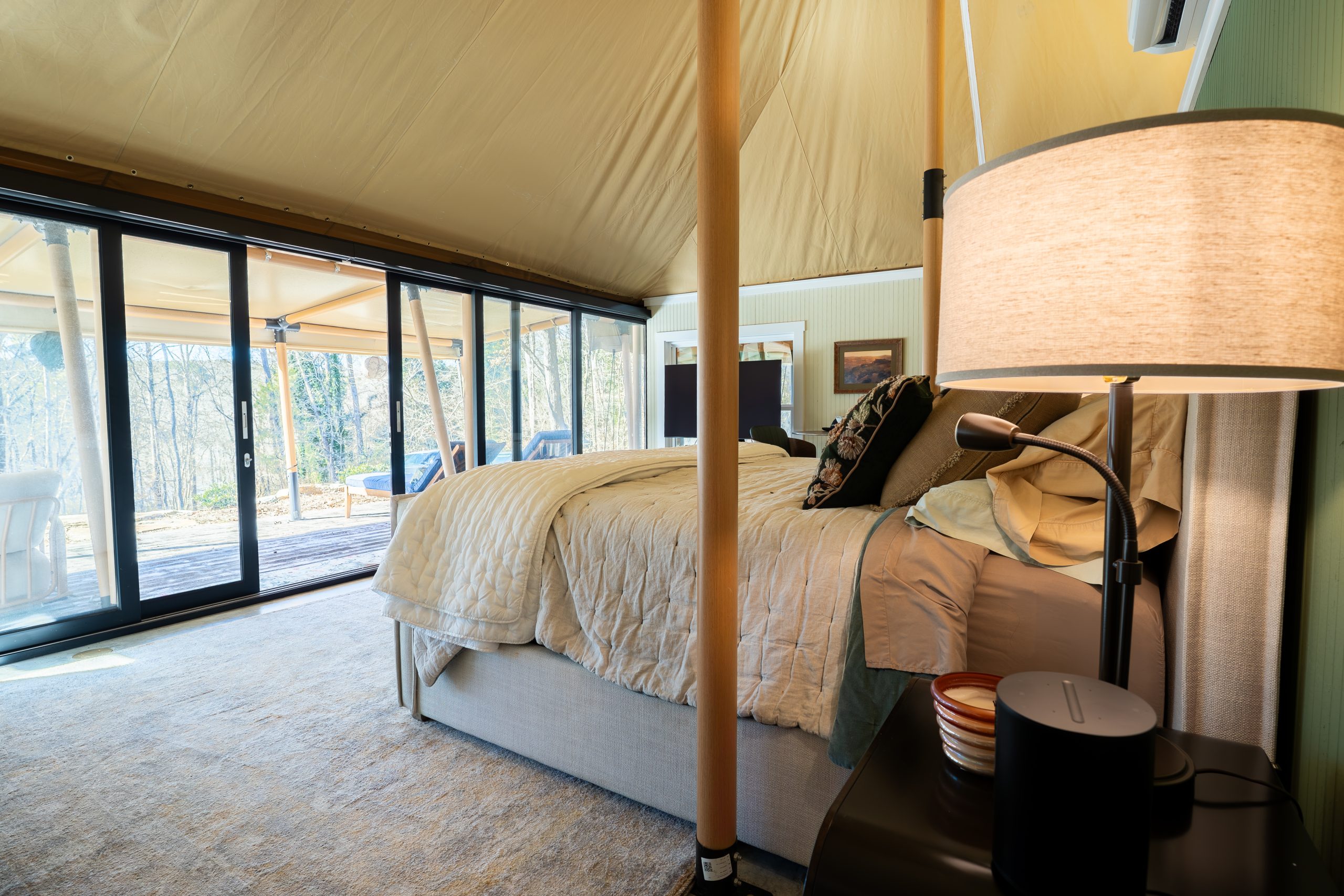 This Luna safari tent is a luxurious guest accommodation in North Carolina. Spacious and beautifully appointed in a tranquil setting.