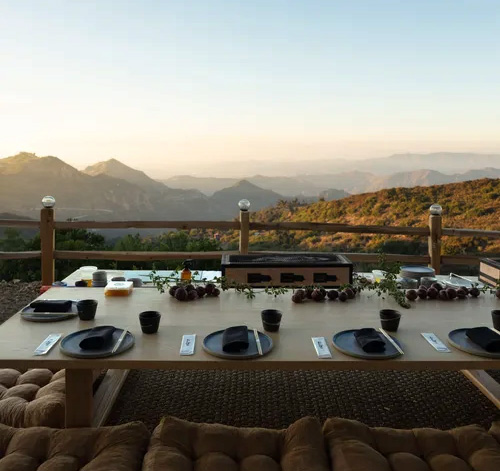 Nestled within the vast canyons and curves of the Santa Monica Mountains, Lucky Bee Ranch offers Luna’s Aurora II Safari Tents on an undisturbed private ranch home to goats, chickens, native plants, and the luckiest bees you’ll ever find. This unique glamping experience prioritizes wellness and peace of mind, allowing guests to disconnect from distractions while getting hands-on with authentic ranch activities like honey extraction, hive maintenance, and honey making, alongside rejuvenating experiences including hiking, yoga, and sound baths. Located just a short drive from Malibu’s beautiful beaches with their unparalleled golden hour sunsets, Lucky Bee Ranch provides a truly one-of-a-kind off-the-beaten-path retreat where personalized service and health & wellness experiences create an unforgettable sanctuary that caters to your every need while immersing you in the natural beauty and tranquil rhythms of ranch life.